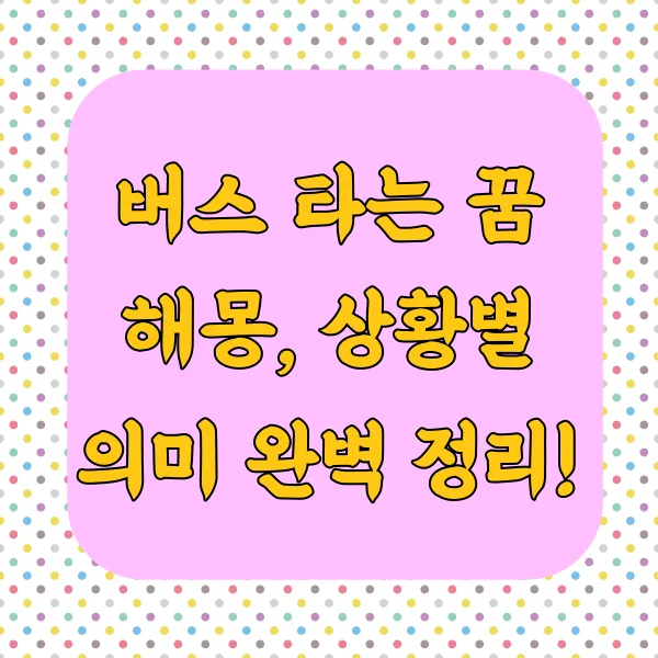 버스 타는 꿈, 혹시 꿔보셨나요? 일상적인 교통수단인 버스가 꿈에 등장한다면 그 의미가 궁금해지기 마련입니다. 단순한 이동을 넘어, 삶의 여정, 목표, 인간관계, 심리 상태까지! 버스 꿈 해몽은 생각보다 훨씬 다채로운 해석을 담고 있습니다. 지금부터 상황별 버스 꿈 해몽을 완벽하게 파헤쳐, 꿈의 메시지를 해독해보도록 하겠습니다. 자신의 무의식을 탐험할 준비되셨나요? ^^