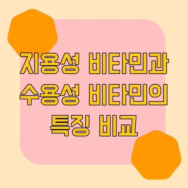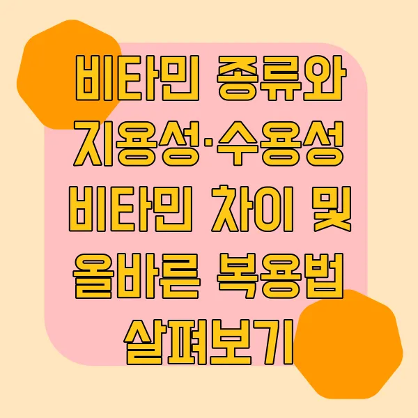 우선 비타민은 크게 두 가지, 지용성 비타민 과 수용성 비타민 으로 나뉜다는 건 아시죠? 지용성 비타민은 기름에 녹는 친구들이고, 수용성 비타민은 물에 녹는 친구들이에요. 이 차이점, 굉장히 중요하니까 꼭 기억해 두세요! 밑에서 더 자세히 설명드릴게요~?