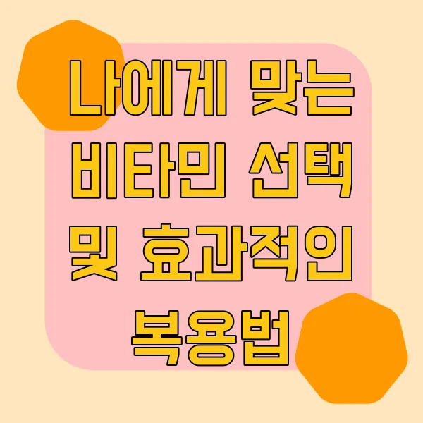 자, 이제 비타민의 종류와 특징에 대해서는 어느 정도 감을 잡으셨죠? 그럼 이제 가장 중요한 부분! 나에게 딱 맞는 비타민을 고르는 방법과 효과적으로 섭취하는 꿀팁들을 알려드릴게요! 비타민 섭취, 잘못하면 오히려 독이 될 수도 있다는 사실, 알고 계셨나요? 효과는 극대화하고 부작용은 최소화하는 비법 , 지금부터 낱낱이 파헤쳐 보겠습니다!