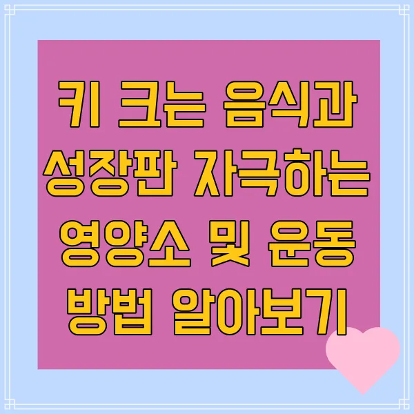 안녕하세요! 혹시 요즘 거울 볼 때마다 키가 좀 더 컸으면 하는 생각, 드시나요? 저도 그 마음 너무 잘 알아요. 훌쩍 큰 키, 늘씬한 비율, 상상만 해도 설레지 않나요? 그래서 오늘은 우리 같이 '키 크는 음식' 과 '성장판 자극' 에 대해 제대로 파헤쳐 보려고 해요! 키 크는 운동 방법부터 생활 습관 개선 팁까지, 숨은 키를 찾아내는 비밀 들을 모두 공유할게요. 함께 알아보고 쑥쑥 크는 기적 을 경험해 보자구요! 자, 그럼 지금부터 키 성장 프로젝트 , 시작해 볼까요?