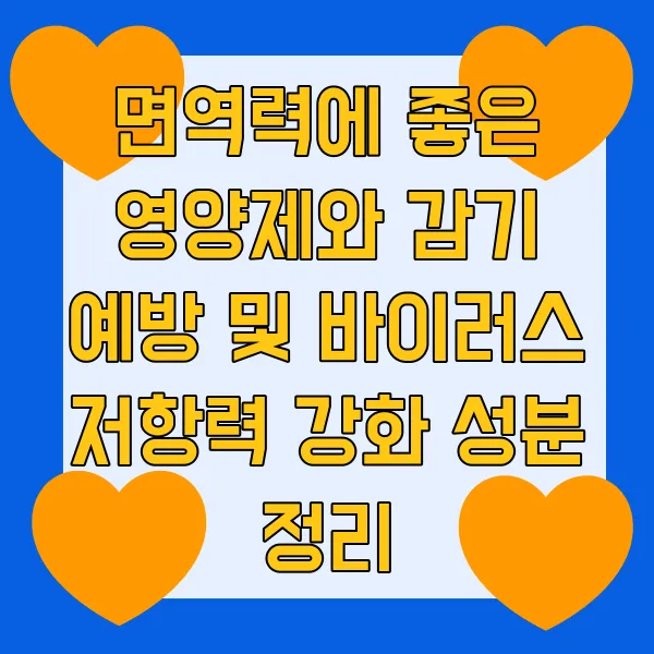 면역력이 떨어지면 감기에 쉽게 걸리기도 하고, 각종 바이러스 에도 취약해지죠. 면역력 강화에 도움 되는 영양제 종류 부터 감기 예방, 바이러스 저항력을 높이는 영양 성분 까지! 함께 알아보고 건강하게 이 시기를 이겨내도록 해요! 면역력 관리를 위한 생활 습관 개선 팁 도 준비했으니 끝까지 읽어주시면 좋을 것 같아요.