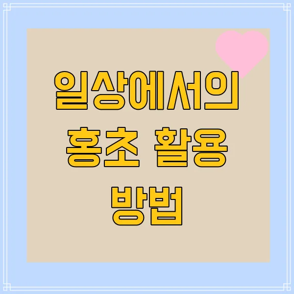 마지막으로 홍초는 미용에도 활용할 수 있는데요! 홍초는 피부에 좋은 성분들이 많아 화장품을 만들 때 활용해보세요. 예를 들어, 홍초와 꿀을 섞어 얼굴 팩으로 사용하면 피부가 더욱 촉촉해지고 생기가 돌거든요. 이런 팩을 주 1~2회 하면 피부가 맑아지는 효과를 느낄 수 있습니다.