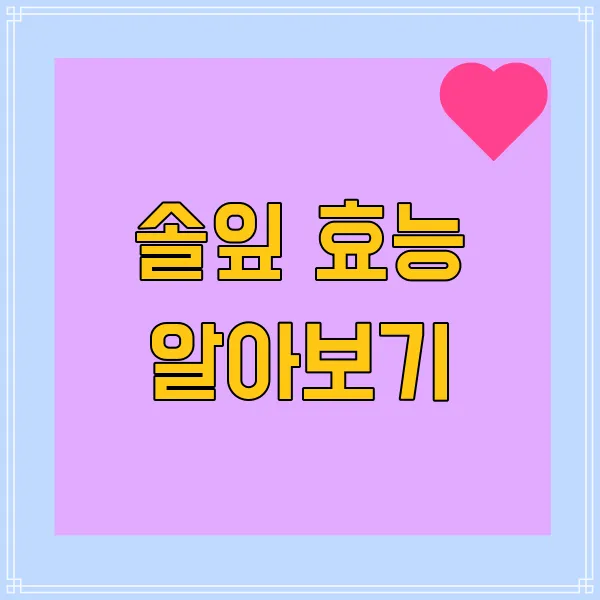솔잎이 가진 항균 및 항바이러스 특성 또한 빼놓울 수 없습니다. 솔잎의 정유 성분인 피넨(pinenes)은 인체 내 유해균을 억제하고, 감염에 대한 저항력을 증가시키는 데 도움을 줍니다. 이는 특히 면역력이 약해진 시점에서 유용하죠. 예를 들어, 2018년 발표된 연구에서는 솔잎이 특정 바이러스에 대해 효과적인 억제作用을 일으킨다는 사실이 검증되었는데, 이는 솔잎이 진정한 면역 파트너가 될 수 있음을 보여줍니다. 믿을 수 없으시죠?! 😍