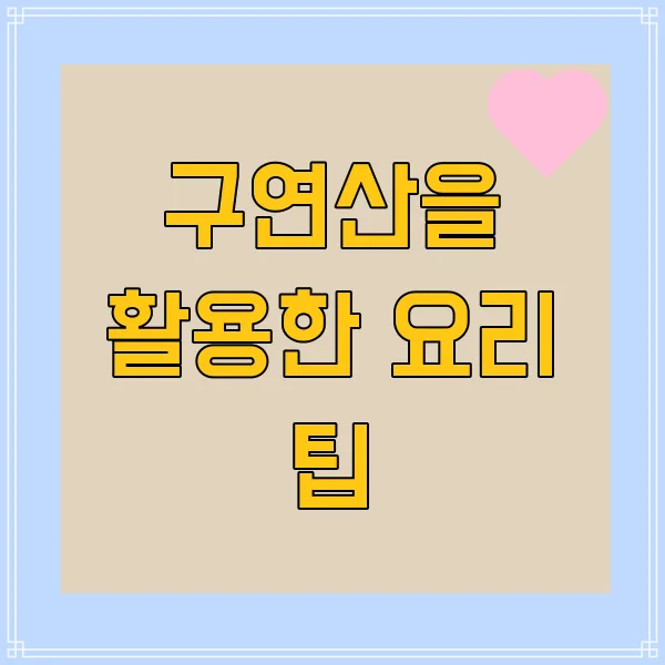 구연산은 이렇게 다양한 건강 효과를 가지고 있어, 일상에서 적극적으로 활용해보면 좋을 것 같습니다. 따라서 건강을 위해 구연산을 포함한 식품을 의식적으로 선택하는 것이 하나의 좋은 방법이 될 수 있습니다!