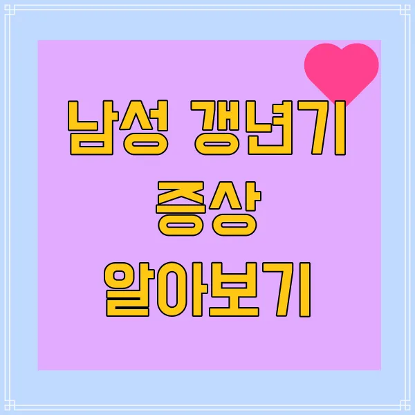 안녕하세요! 오늘은 조금 특별한 주제를 가지고 이야기를 나눠보려 합니다. 바로 남성 갱년기 증상에 대한 이야기인데요. 흔히 여성만 겪는 변화라고 생각할 수 있지만, 남성과 여성 모두에게 영향을 미치는 중요한 주제랍니다. 갱년기가 무엇인지, 그 과정에서 겪는 증상은 어떤 것들이 있는지, 또 어떻게 관리할 수 있는지 함께 알아보면 좋겠어요. 요즘 많은 남성들이 겪고 있는 고민이니, 여러분도 공감할 수 있는 부분이 많을 거라 믿습니다. 그럼 시작해볼까요?