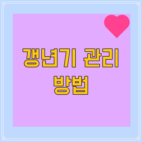 전문가들은 갱년기를 보다 잘 관리하기 위해 다음과 같은 조언을 주십니다. 첫째, 정기적인 건강 검진이 필수적입니다. 특히, 혈액검사를 통해 호르몬 수치를 진단하는 것은 갱년기의 증상을 정확히 파악하는 데 중요한 역할을 합니다. 자주 언급되는 증상으로는 피로, 우울감, 성욕 감소 등이 있으니, 이러한 변화가 느껴진다면 과감히 전문가를 찾아가는 것이 좋습니다. 건강은 무엇보다 소중하니까요~!