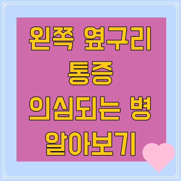 결국, 왼쪽 옆구리 통증이 발생하면 원인을 정확히 판단하는 것이 중요합니다. 때로는 단순한 문제일 수 있지만, 심각한 질병의 신호일 수도 있으니 탄력적으로 대처하는 것이 필요하겠죠? 😊 확인하고 예방하는 습관이 건강을 지키는 첫걸음입니다.