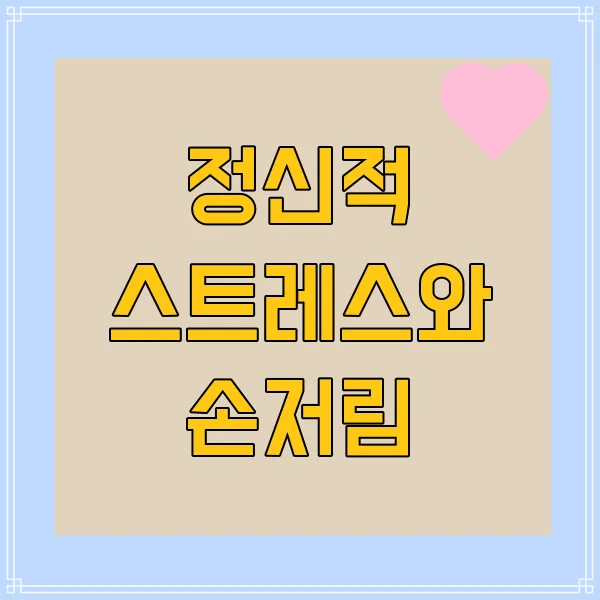 정신적 스트레스가 우리 몸에 미치는 영향은 생각보다 훨씬 더 심각할 수 있습니다. 요즘같이 바쁜 사회에서 많은 분들이 스트레스를 받고 있는데요, 이 스트레스가 의외로 손저림과 같은 신체적 증상으로 나타날 수 있다는 사실, 알고 계셨나요? 🤔 연구에 따르면, 정신적 스트레스가 손저림을 유발할 수 있는 주요 요인 중 하나로 지목되고 있습니다. 스트레스가 신경계에 미치는 영향을 고려할 때, 이는 매우 논리적인 연결이라고 할 수 있습니다!
