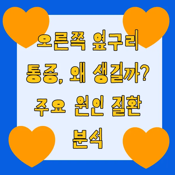 오른쪽 옆구리 통증, 혹시 나도 심각한 질병?!😨 가벼운 근육통부터 생명을 위협하는 질환까지, 오른쪽 옆구리 통증의 다양한 원인을 파헤쳐 보세요! 맹장염, 담낭염, 신장결석 등 주요 질환의 증상과 진단, 치료법을 자세히 알려드립니다. 통증의 위치와 양상을 정확히 파악하여 질병 조기 진단의 골든 타임을 놓치지 마세요!