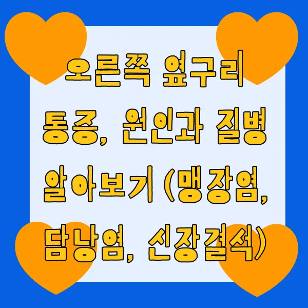 복부 장기에 발생하는 염증성 질환인 맹장염과 담낭염은 오른쪽 옆구리 통증의 흔한 원인이며, 방치할 경우 심각한 합병증으로 이어질 수 있습니다.