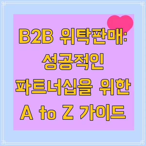 B2B 위탁판매는 재고 부담 없이 사업을 확장하고자 하는 모든 기업에게 최고의 전략입니다! 급변하는 시장 상황에서 경쟁력을 유지하려면 전략적인 파트너십 구축이 필수적이죠. 다양한 상품, 탄력적인 운영, 그리고 혁신적인 성장 기회를 제공하는 B2B 위탁판매의 세계로 뛰어들 준비가 되셨나요? 이 글에서는 최고의 파트너를 선택하는 방법과 성공적인 비즈니스 운영 전략을 제시합니다. 함께 B2B 위탁판매 시장의 핵심 트렌드를 파악하고 최적의 파트너를 찾아 사업을 한 단계 도약시켜 보세요! (키워드: B2B 위탁판매, 도매, 파트너십, 공급업체, 전략)